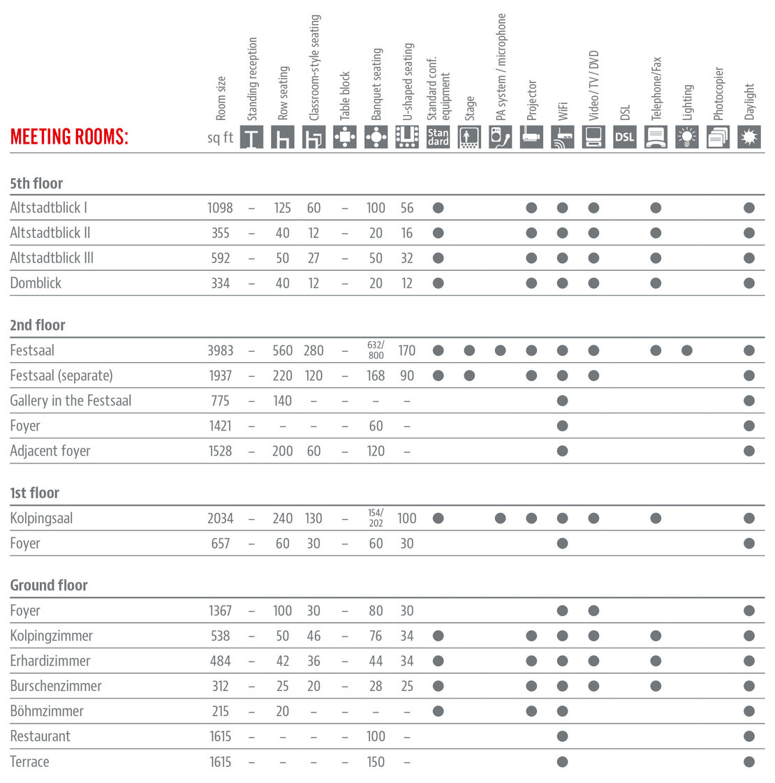 The congress and cultural center in the Kolpinghaus Regensburg is located in the historic old town and has ten variable event rooms. The award-winning cuisine of the in-house restaurant offers healthy and creative catering for up to 1,000 guests. Barrier-free access is possible and the large ballroom also has an induction loop.